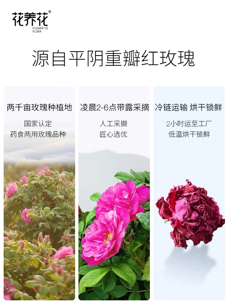 山東華玫生物,作為“中國玫瑰之都” 山東省平陰縣龍頭食品產品生產企業,是一家集種植、產品深加工、產品銷售。山東華玫現有“花養花”及“泫后”兩大自營品牌,現有花茶(凍干和烘干)、花草茶、精油、玫瑰醬、玫瑰鮮花餅、化妝品生產線,主要生產玫瑰“花茶、食品、化妝品”三大玫瑰系列產品。